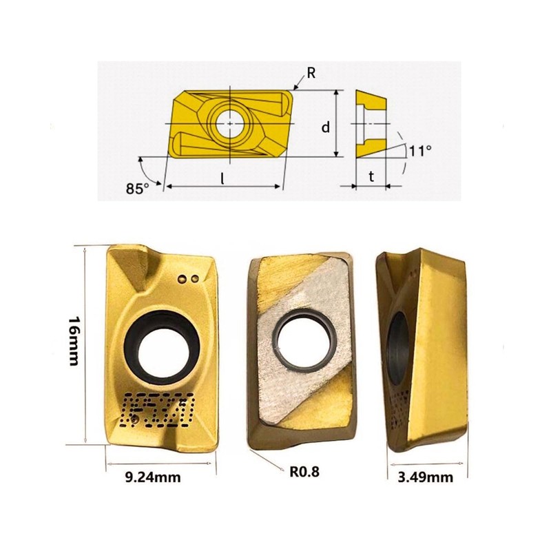 - 🎄 Modelo: Dual-edge APMT1604 PDER , Revestimiento: CVD, Material: Carburo, I.C (d): 0.35 pulgadas, Grosor: 0.2 pulgadas, Agujero (d1): 0.15 pulgadas, Radio de nariz (r): 1/32 pulgadas, Ángulo de la nariz: 85°, Ángulo de alivio: 11°, bueno tanto para acabado como para desbaste