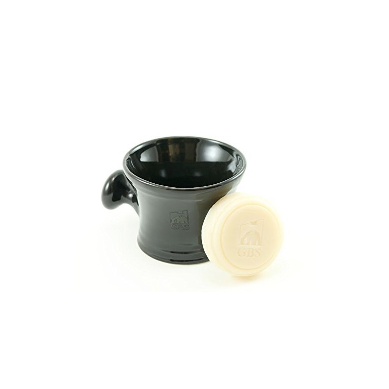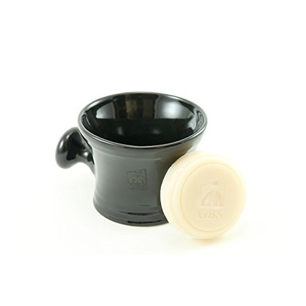 GBS Ceramic Black Shaving Bowl / Mug with Handle Knob-- Comes with 3 Oz 97% Natural GBS Soap -- Fits up to a 4 Oz Soap by GBS