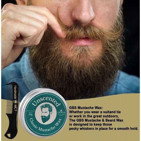 GBS Mustache Wax tin & Comb Set Strong Hold Fragrance Free/ No scent Pocket Travel