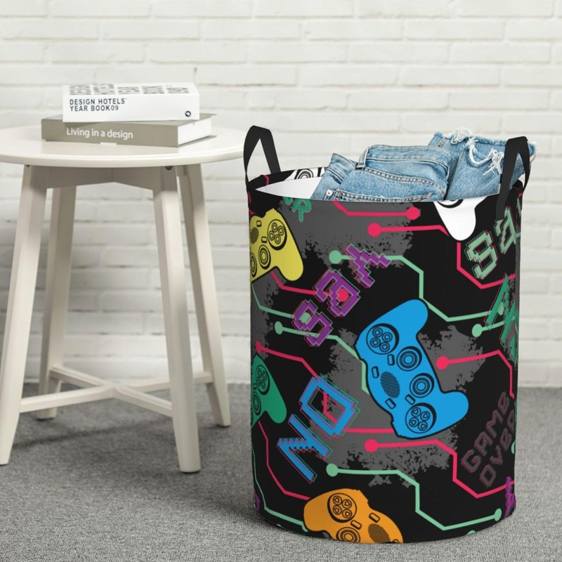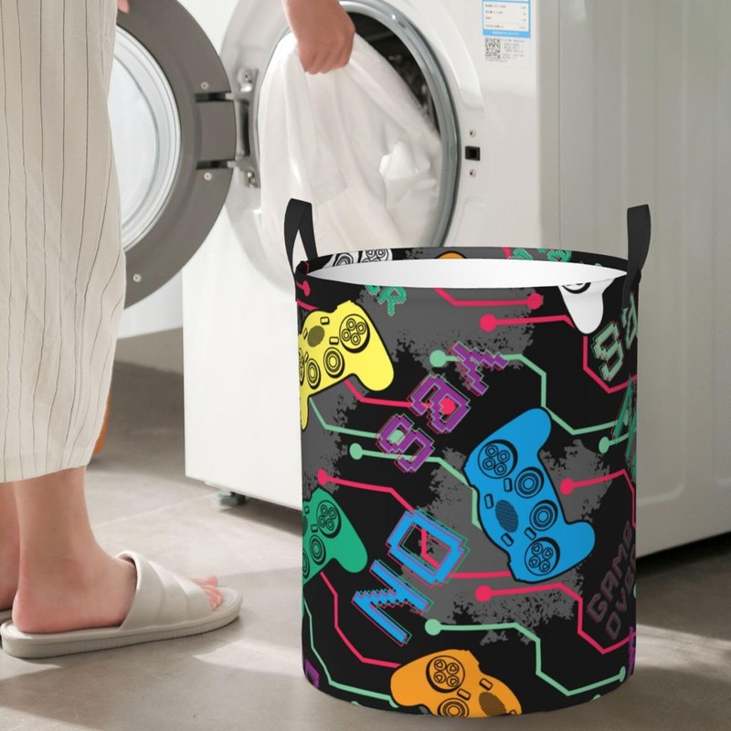 Gbuzozie Game Joysticks Round Laundry Hamper Video Game Controller Background Storage Basket Toys Clothes Organizer Bin For Home Bathroom Bedroom Dorm Nursery, 62l