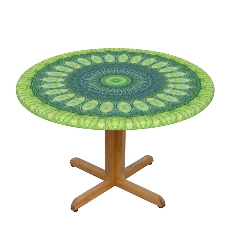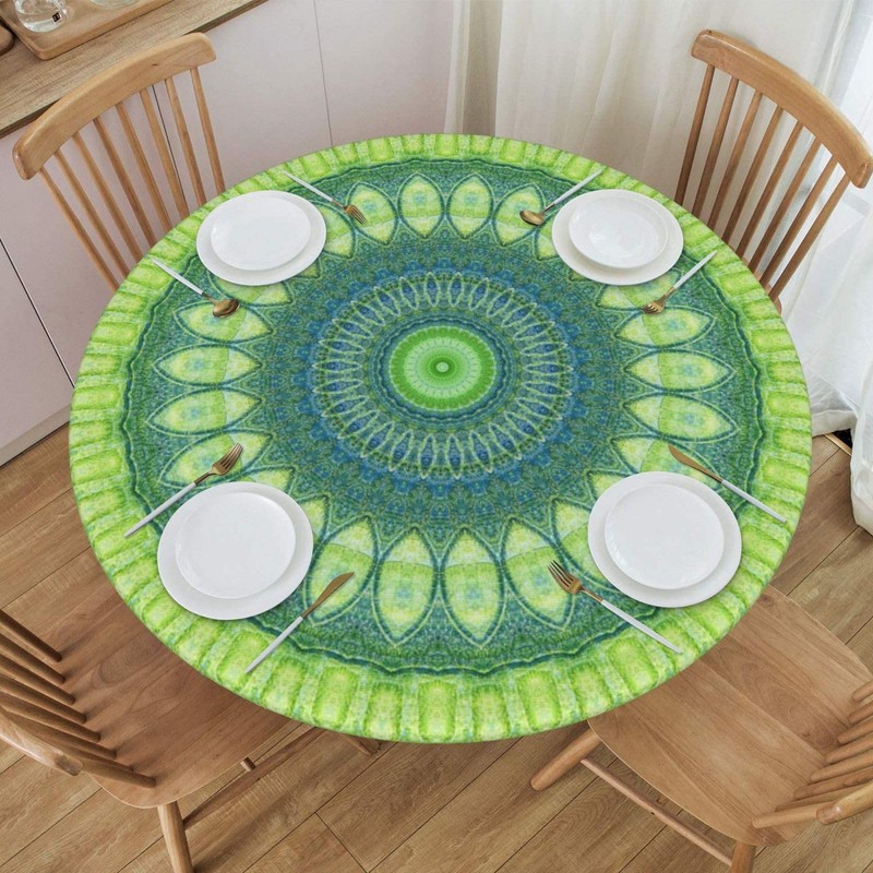 Gbuzozie Mandala Tablecloth with Elastic Edge, Round Table Cover Washable Reusable Boho Table Cloths for Kitchen Dining Party, Medium (Fits 45-50 in)