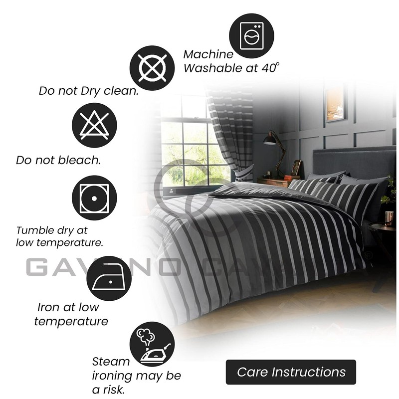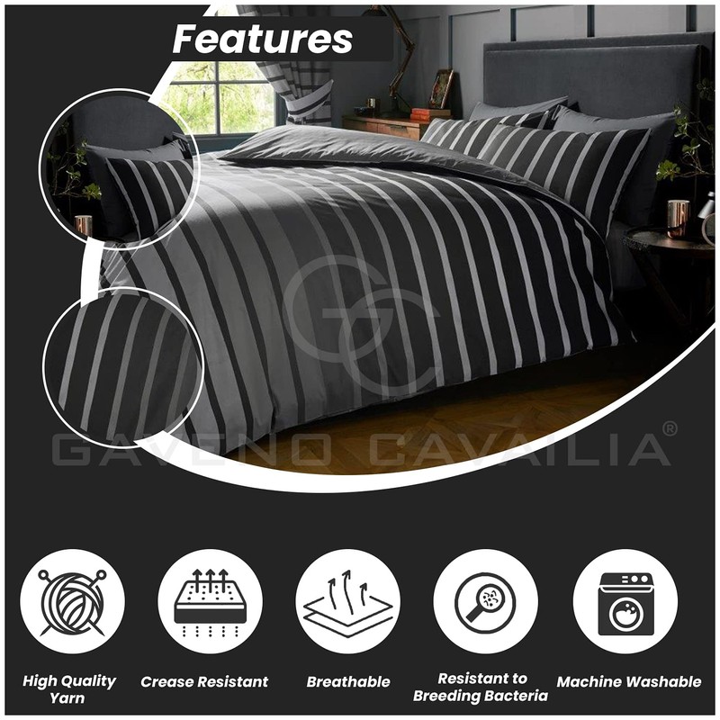 GC GAVENO CAVAILIA Easy Care Oscar Striped Duvet Cover, Luxury Soft & Cosy Printed Reversible Lined Quilt Bedding Set, Polycotton, Grey, Single