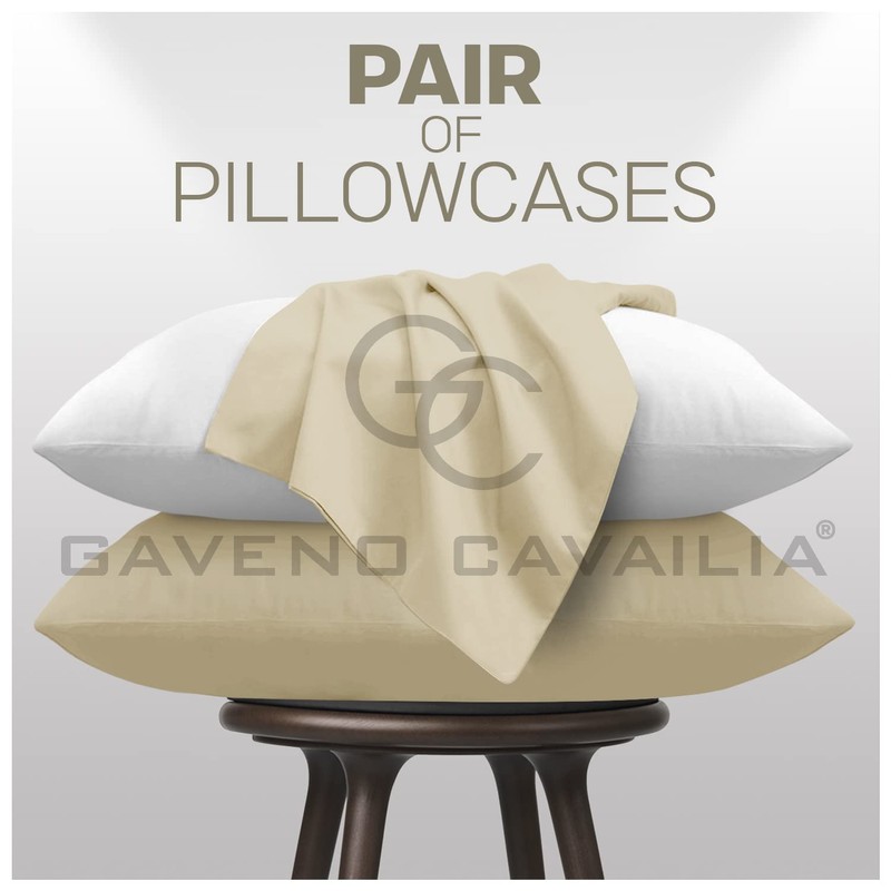 GC GAVENO CAVAILIA Housewife Pillowcases 2 Pack, Breathable Standard Pillow Cases, Plain Pillow Covers With Envelop Closure, Cream, 74X48 Cm, 708735
