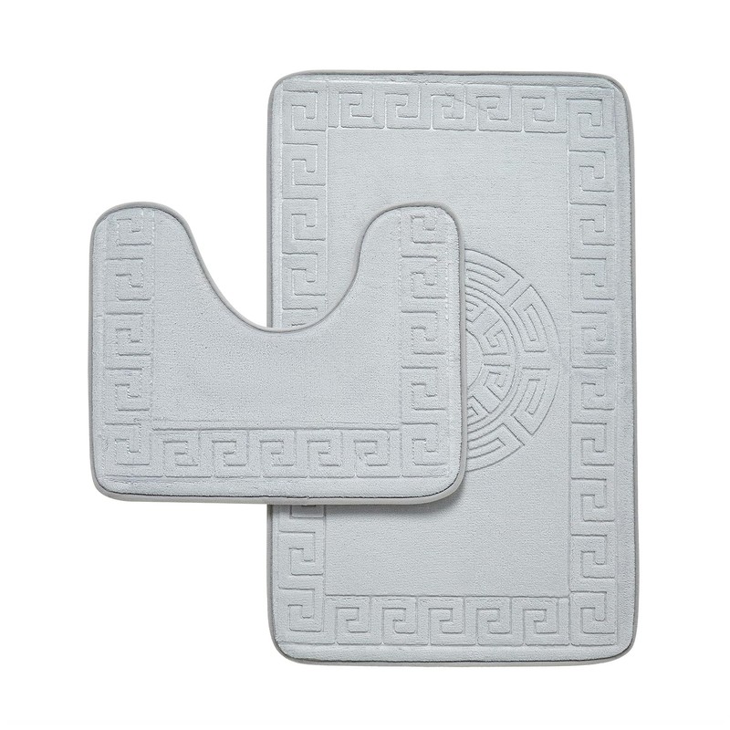 GC GAVENO CAVAILIA Memory Foam Bath Mat Non Slip - Extra Soft Highly Water Absorbent Bathroom Mat Sets 2 Piece - Greek Toilet Rug (50 x 80 cm) & Pedestal Set (50 x 40 cm) - Washable - Grey