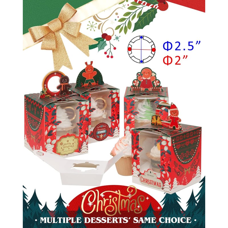 • PACKAGE INCLUDED : 25PCS Christmas Cupcake Boxes, 25PCS cupcake Holder Insert.3.7x3.7x4.5 inch,9.4x9.4x11.4 cm.