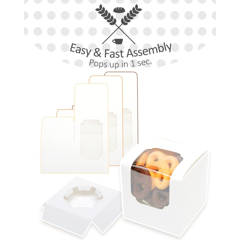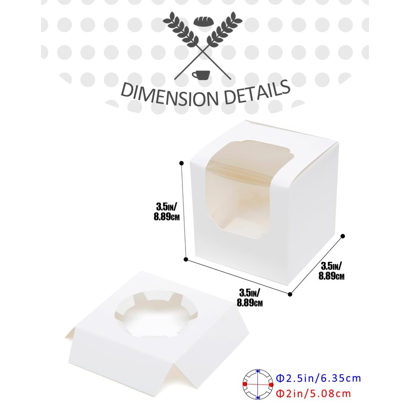 Gcardist White Cupcake Boxes Individual Cupcake Container 35Pcs 8.9x8.9x8.9cm Auto-Pop up Single Cupcake Boxes (35 Boxes+35 Inserts,3.5"x 3.5"x 3.5" inch)