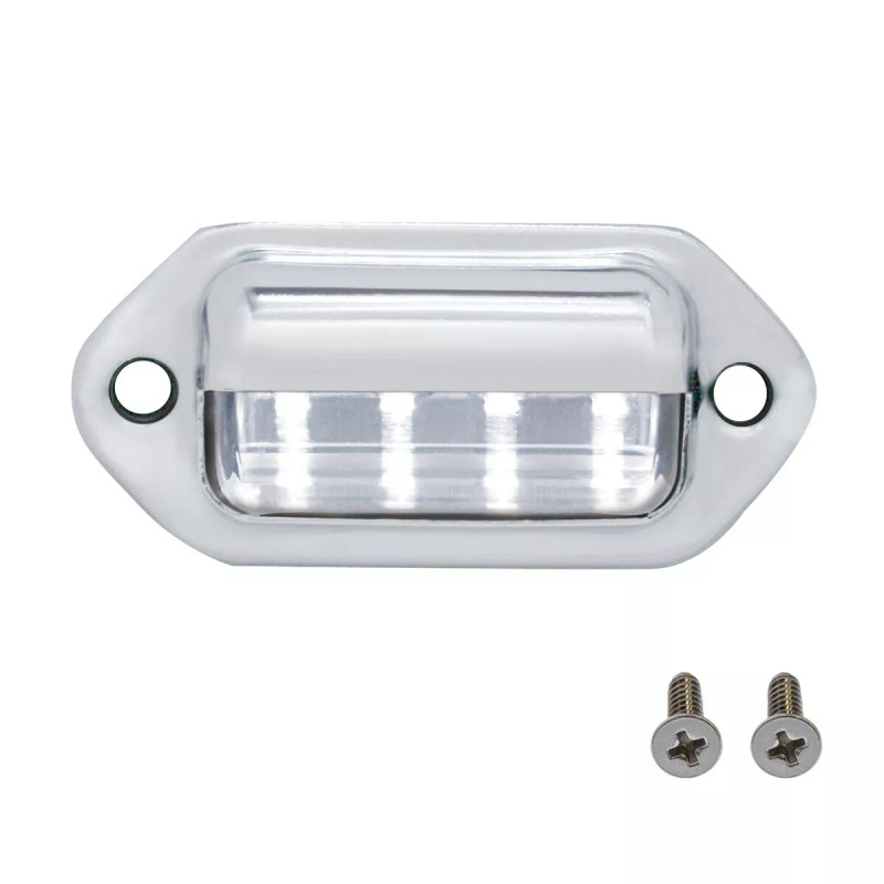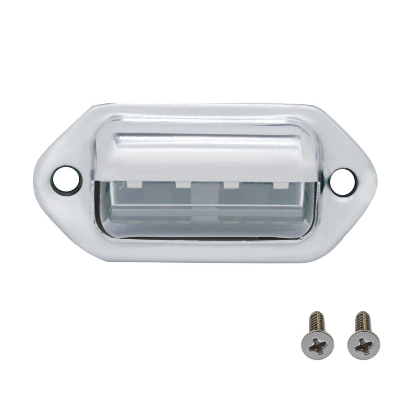 GCC 2.5" Front Rear Rectangular 4 White LED Chrome License Plate Utility Light
