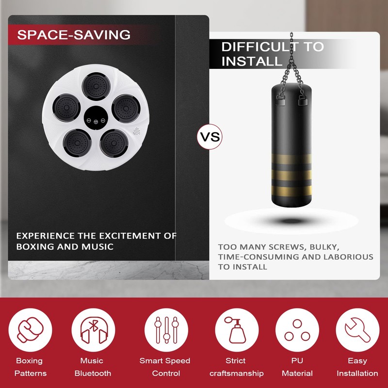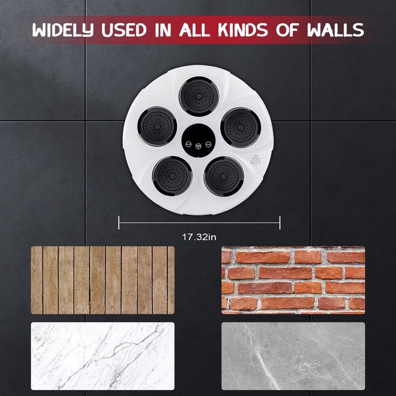 - VELCRO MOUNTING: Smart music boxing machine is wall-mounted design, suitable for many types of wall mounting. Velcro mounting is recommended: simply stick the double-sided velcro to the boxing device and the wall. PS: