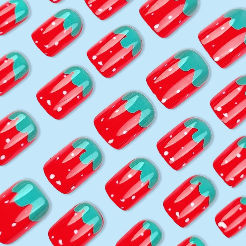 - Summer Nail Art Set: You will get 24 short square press on nails with bright red strawberry design for a rich summer atmosphere. Adults and kids will love it