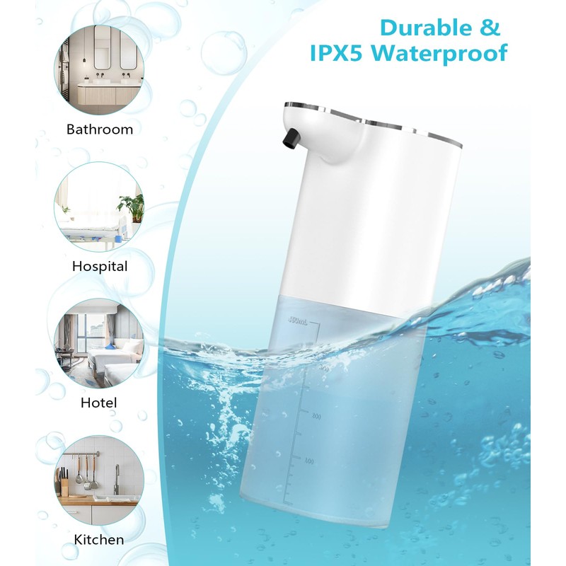 - IPX5 waterproof and USB charging: the no touch soap dispenser is IPX5 waterproof and the rubber plug on the charging port protects the machine from water damage and corrosion. The built-in battery of the soap dispenser can be charged via type C and does not need to be replaced. The battery with 1200 mAh and extra long standby time avoids frequent charging, is more convenient and environmentally friendly.