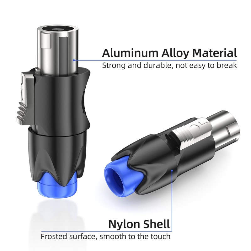 - Premium Quality Our speaker adapter plug housing is made of high quality nylon material with aluminum alloy head, sturdy and compact, tiny and lightweight, with low signal transmission loss and high fidelity, suitable for long-term use. The surface of the speaker plug is frosted and feels smooth. These Speakon adapters are easy to install, no soldering required, saving time and effort on installation.