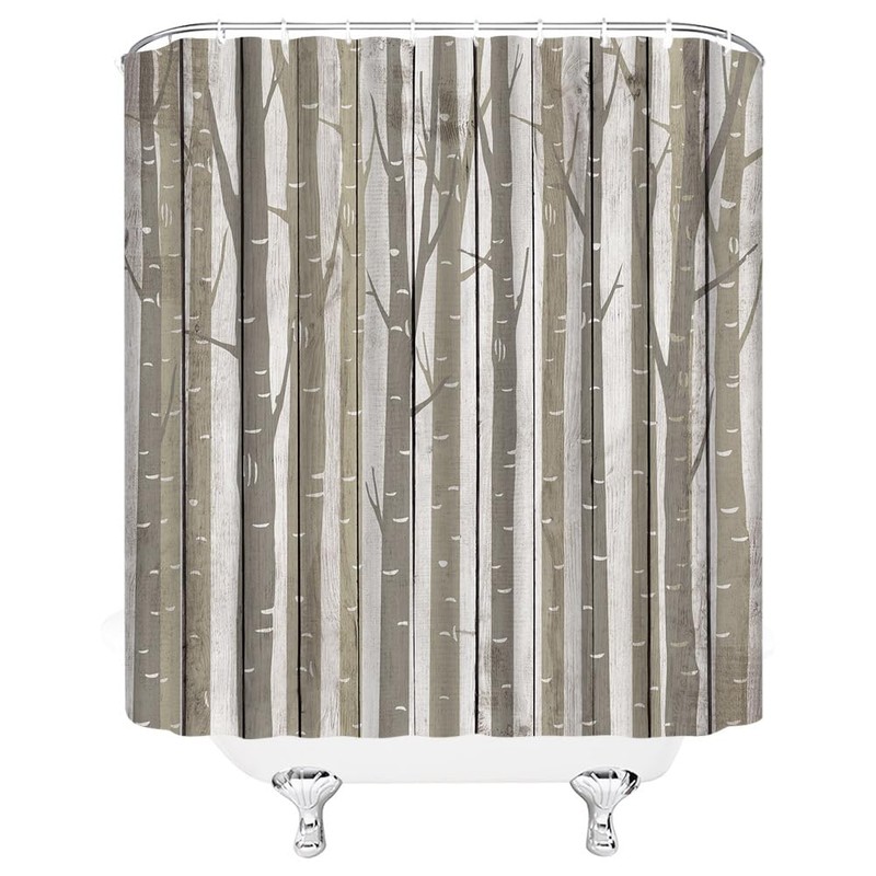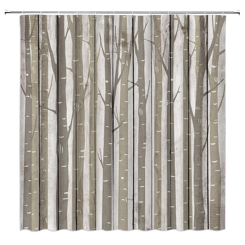 - Nature Inspired Design: Bring the beauty of the forest indoors with our abstract birch tree trunk shower curtain, featuring rustic wooden board accents.