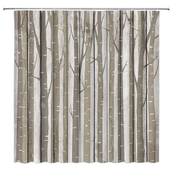 GCTNBJL Tree Shower Curtain Abstract Birch Tree Trunk Forest Branch Wooden Board Rustic Vintage Nature Fall Brown Gray Bathroom Home Curtain with Hooks,70" Wx70 H