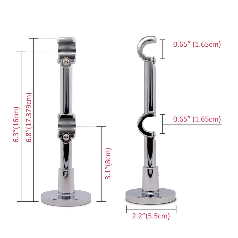 Gcurtain Curtain Rod Bracket, Double Curtain Pole Heavy Duty Holder, Wall Mounted Holder for 16mm Diameter Rod, Chrome