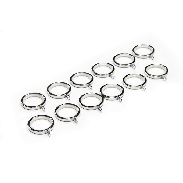 GCurtain Metal Curtain Rings Eyelets Set with 12 Curtain Rods 30 mm Suitable for up to 28 mm Easy Installation Decorative Window - Polished Chrome
