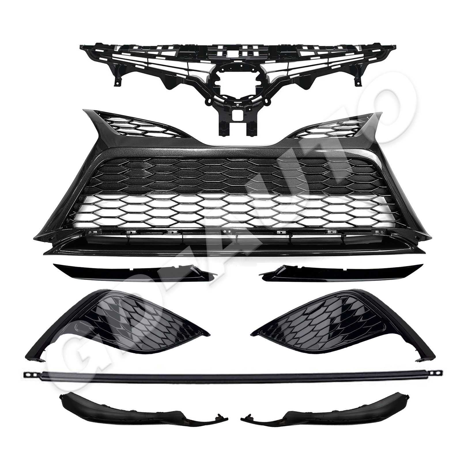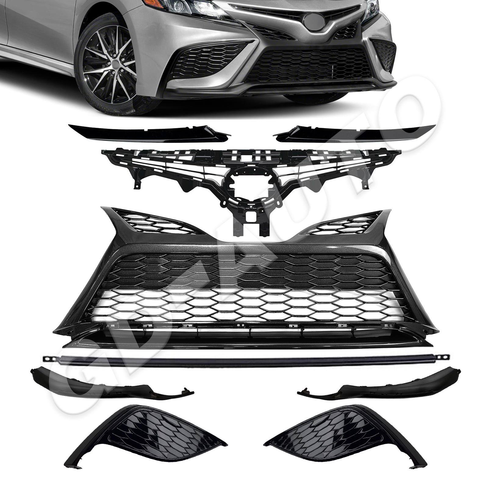 GD-AUTO Fits Toyota Camry SE 2021-2023 Front Grille BK Trim Fog Light Bezel Set 9pcs