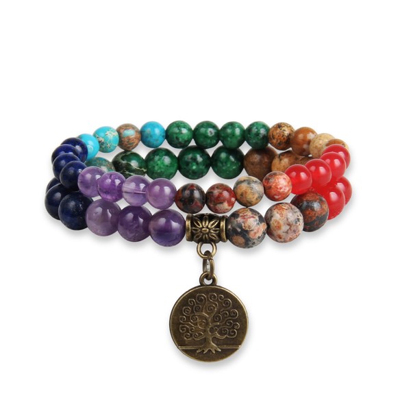GD GOOD.designs Chakra Bracelet Real Stones – Gemstone Bead Bracelet Set with Tree of Life Pendant I Ball Bracelet Made of Natural Stone Beads, Stone