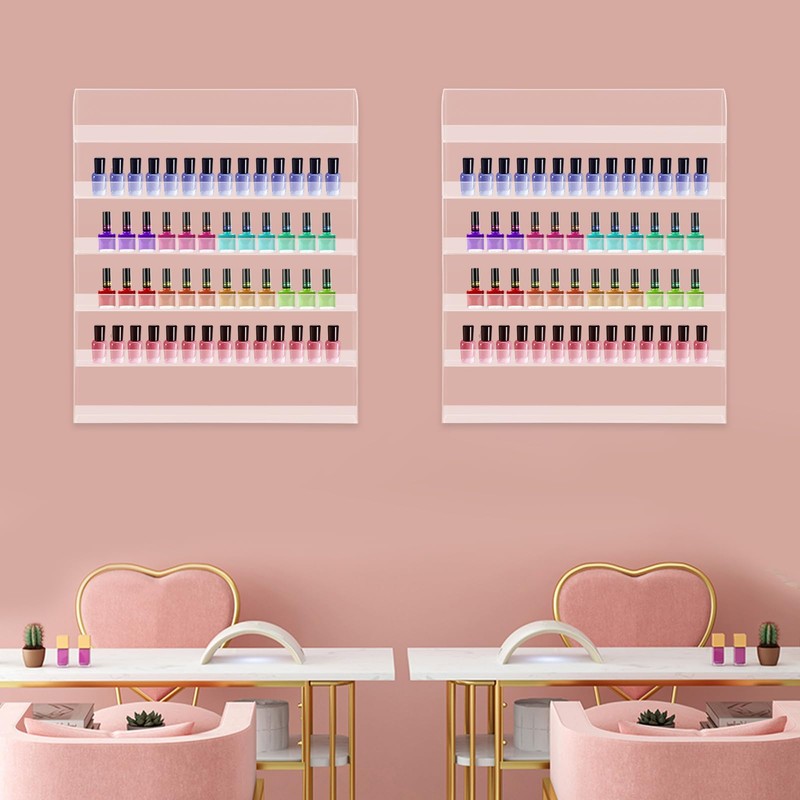 - Complete Display: The clear acrylic ensures that the nail polish you store on it is on full display, catching your customers' interest and allowing you to access the desired nail polish colors with convenience.