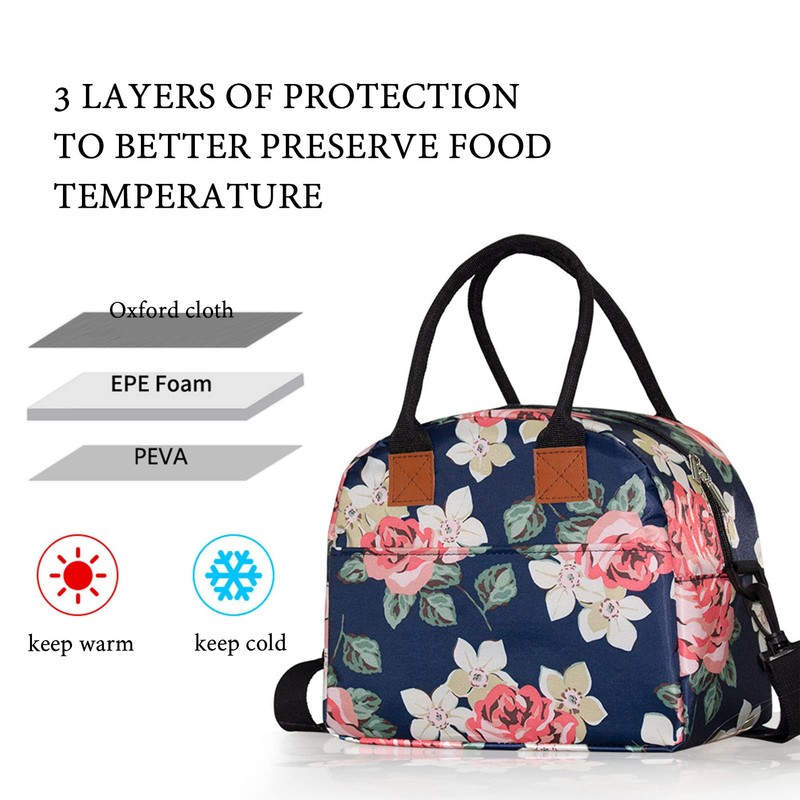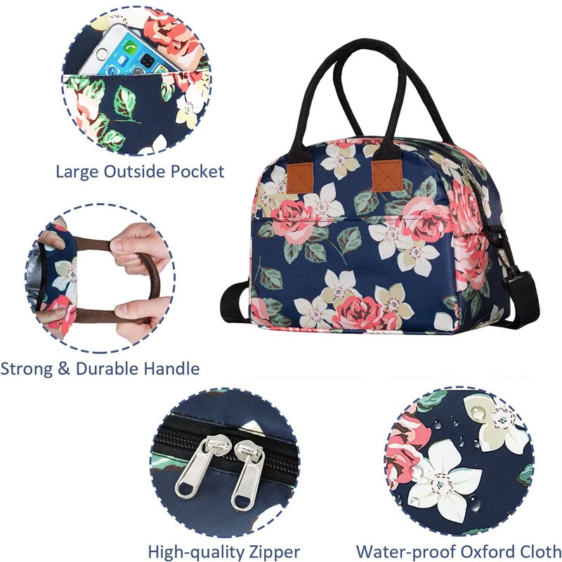 The lunch bag is made of waterproof Oxford cloth and the inner layer is made of grade safety. Features a smooth zipper, durable handle and adjustable shoulder straps. Our lunch bags for women can be used as a small beach cooler, which can better preserve the temperature of food, and it also has many features such as anti-cloud leakage, light weight, large capacity and so on.