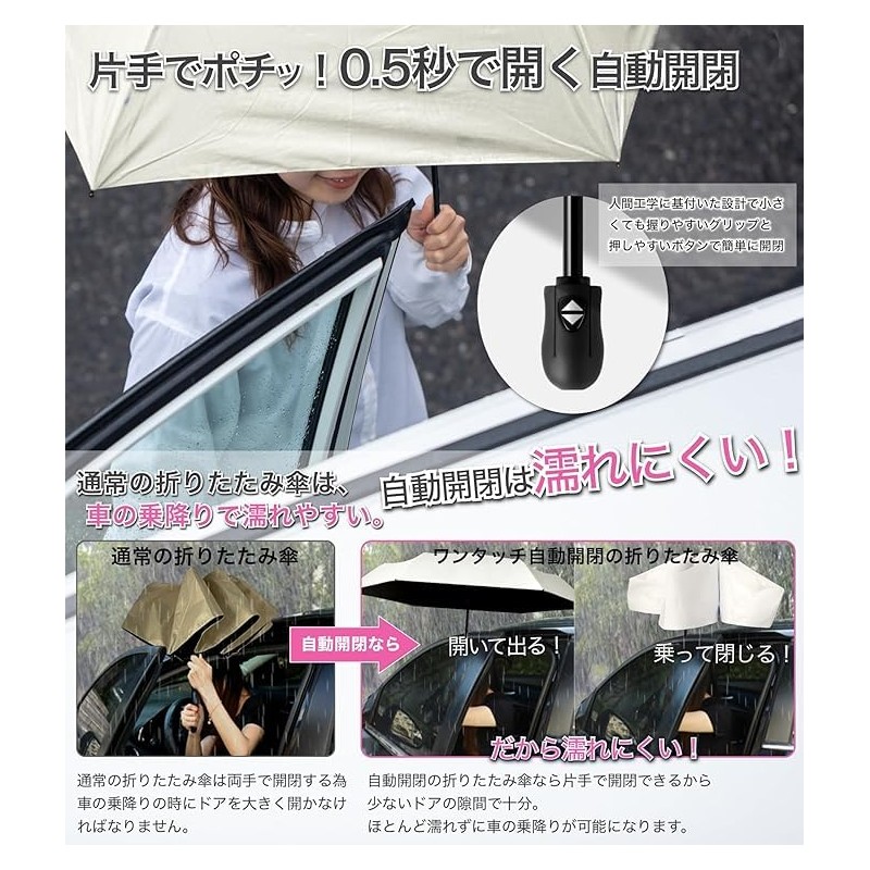 - One-touch Automatic Open and Close Folding Umbrella: This folding umbrella can be opened and closed with a single touch, allowing you to quickly open and close it with just one hand, preventing you from getting wet when you get in or out of a car. Keep it in your bag or car for commuting to work or when you are in an emergency bad weather, it can automatically open and close with one touch
