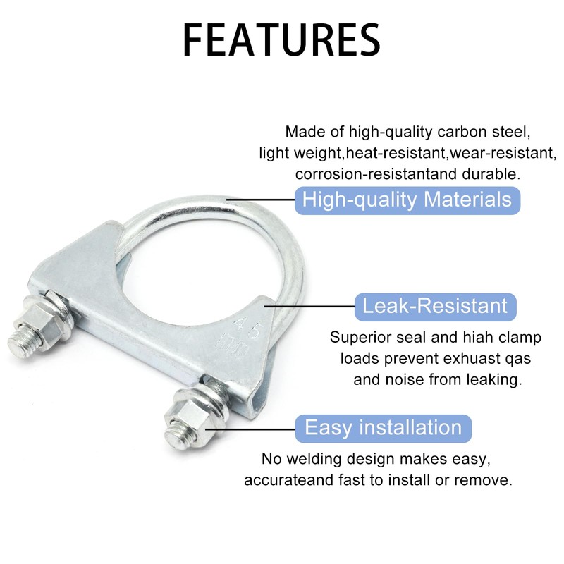 • DESIGN: The muffler clamp finish is galvanized for rust and corrosion resistance, sturdy structure, not easy to deform.