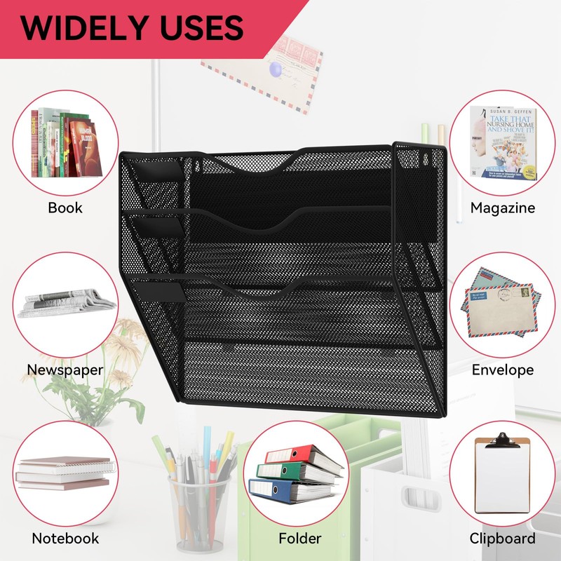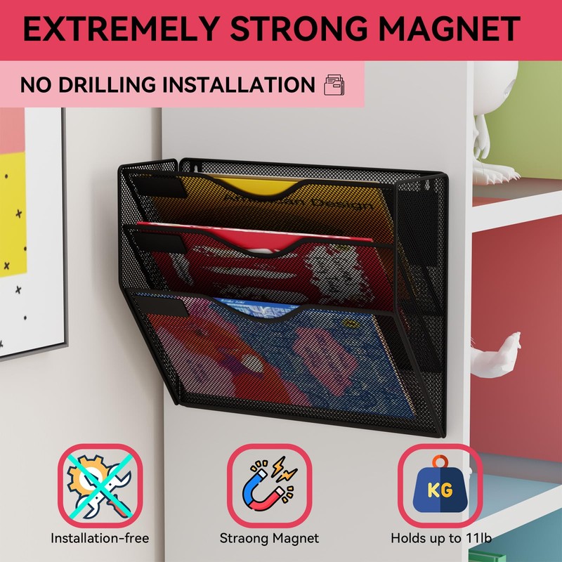 - Durable Metal Construction: The magnetic and wall-mountable file organizer is made of high-quality metal with an elegant mesh design and powder-coated finish. It's anti-oxidation and rust-resistant to ensure long-lasting use for years