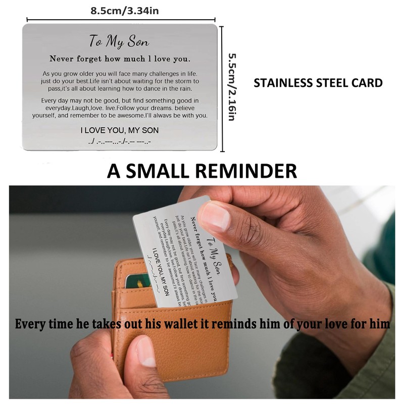 - 【Unique and Meaningful Gifts 🎁 】Perhaps you are looking for an emotional gift, and the hidden message of a Morse Code bracelet is just what you need, "Never forget how much I love you". Different from other bracelets with paper greeting cards, we upgrade to the more precious "stainless steel" material as the engraved card, can easily fit into a wallet or credit card slot, easy to carry.