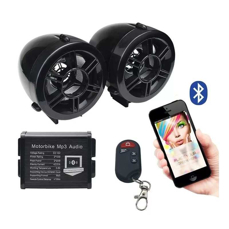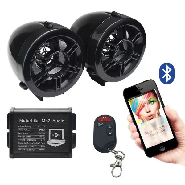 GDM Motorcycle Bluetooth Speakers & Anti Theft Alarm remote Waterproof 2.5" Speaker