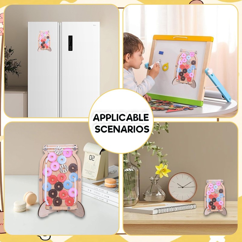 - High Quality Material:The toddler reward jar is made of wood and acrylic, which is sturdy and durable, can be used for a long time, is not easy to wear or crack, and will not cause harm to the human body. It comes with a magnetic strip, which can not only be placed on the stand, but also can be attached to the blackboard or refrigerator. The cute and fashionable design is very popular with children.Note that there is a protective film.