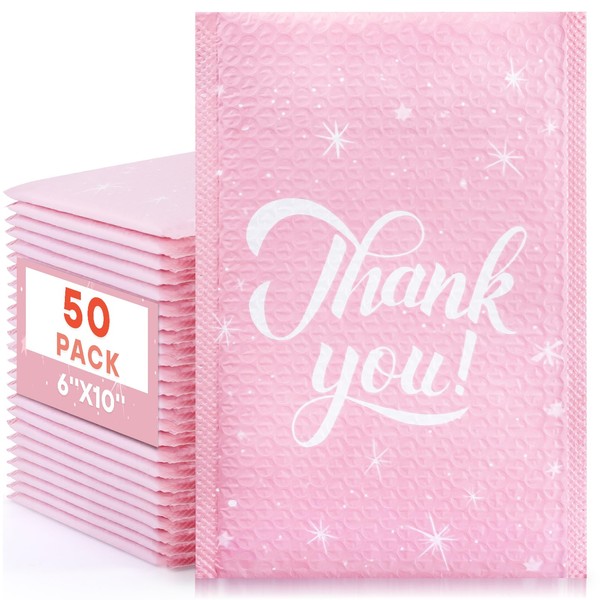 Gdotmely 50 Pack Bubble Mailers 6x10 Inch,Self Sealing Adhesive Padded Envelopes,Waterproof Cute Bubble Mailers,Cushioning Shipping Envelopes for Packaging, Mailing, Gifts, Small Business
