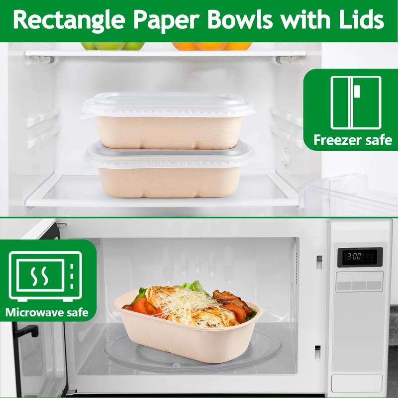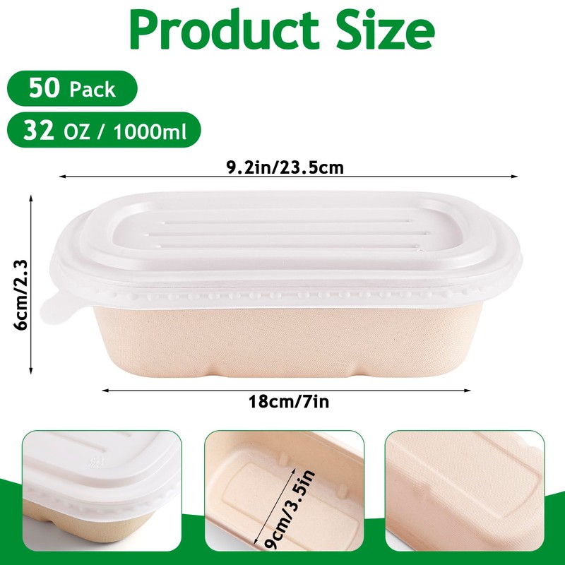 - Package Includes: You will receive 50 large paper bowls with lids, which can enough to meet your daily needs or share with friends. It measure 9.2"(L) x 5"(W) x 2.3"(H) with a 32 oz (1000 ml) capacity, ideal for meals and snacks