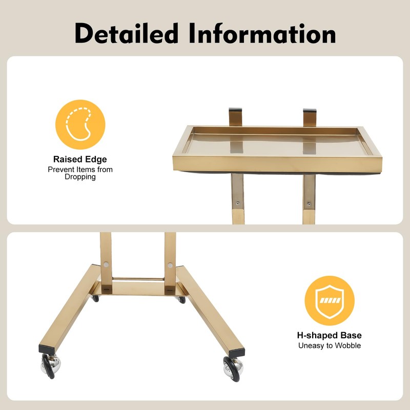 Gdrasuya10 2 Tier Metal Rolling Cart, Hairdressing Tool Trolley, Utility Carts, Stainless Steel Salon Trolley Cart Foldable with Trays and Wheels, for Bedroom Tattoo Shop (Gold)