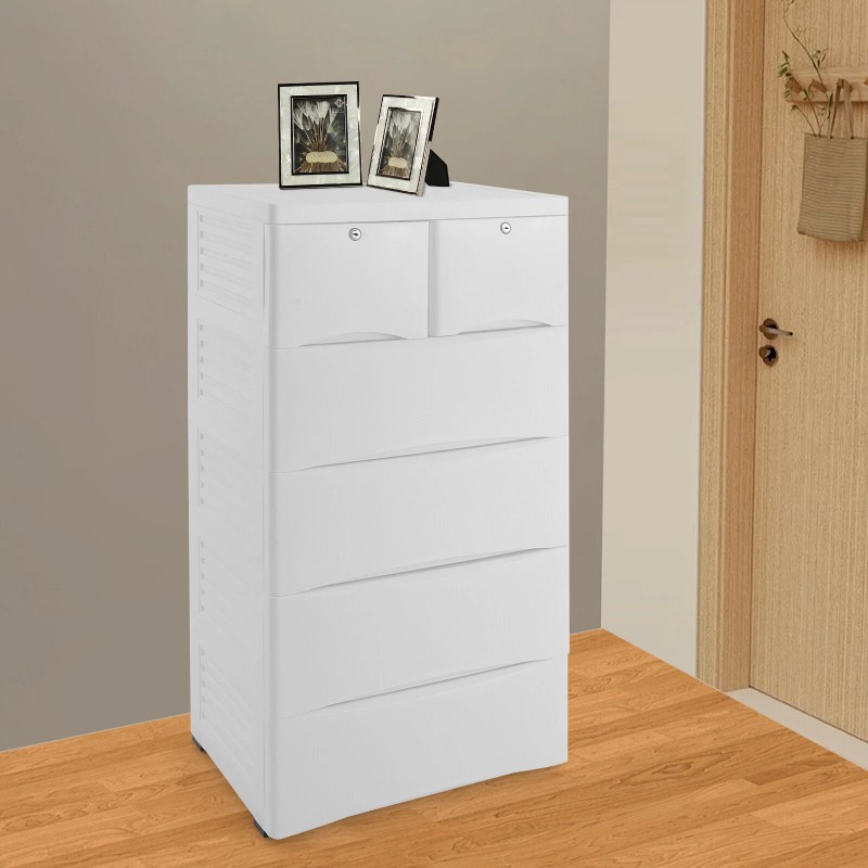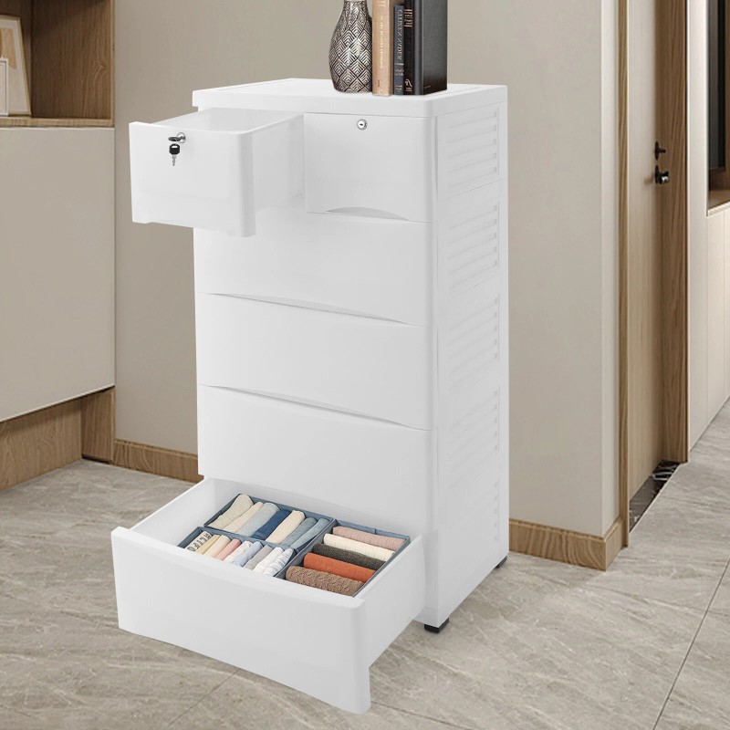 Our 5-tier storage dresser makes efficient use of vertical space and gives you flexibility. Anti-fallout clasps give you peace of mind and the roller design makes it easy to move around. Grab it now to upgrade your storage game and keep your life organized!