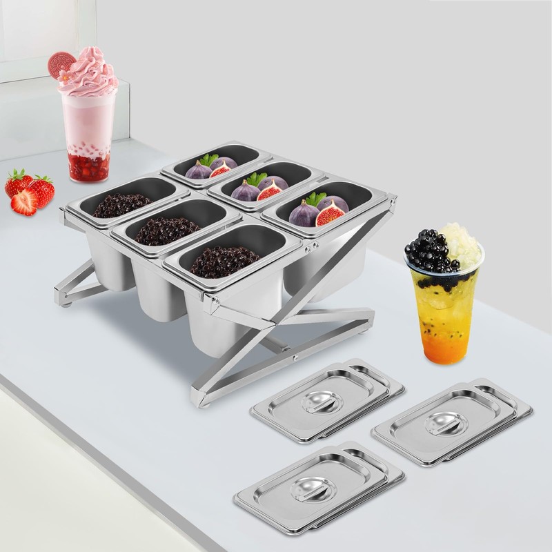Gdrasuya10 Expandable Stainless Steel Spice Rack Set, 6 Pans Condiment Seasoning Containers with Sealed Lid Seasoning Food Containers Spice Rack Organizers Topping Station