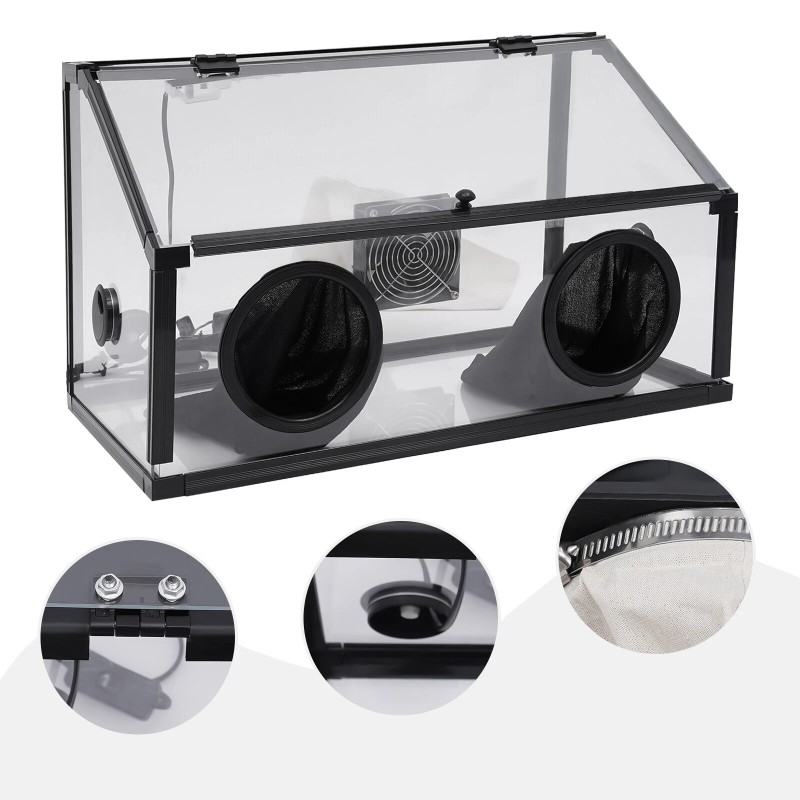 GDRASUYA10 Fully Enclosed Electric Grinding Table Polisher Dust Box Acrylic Cover+LED Light