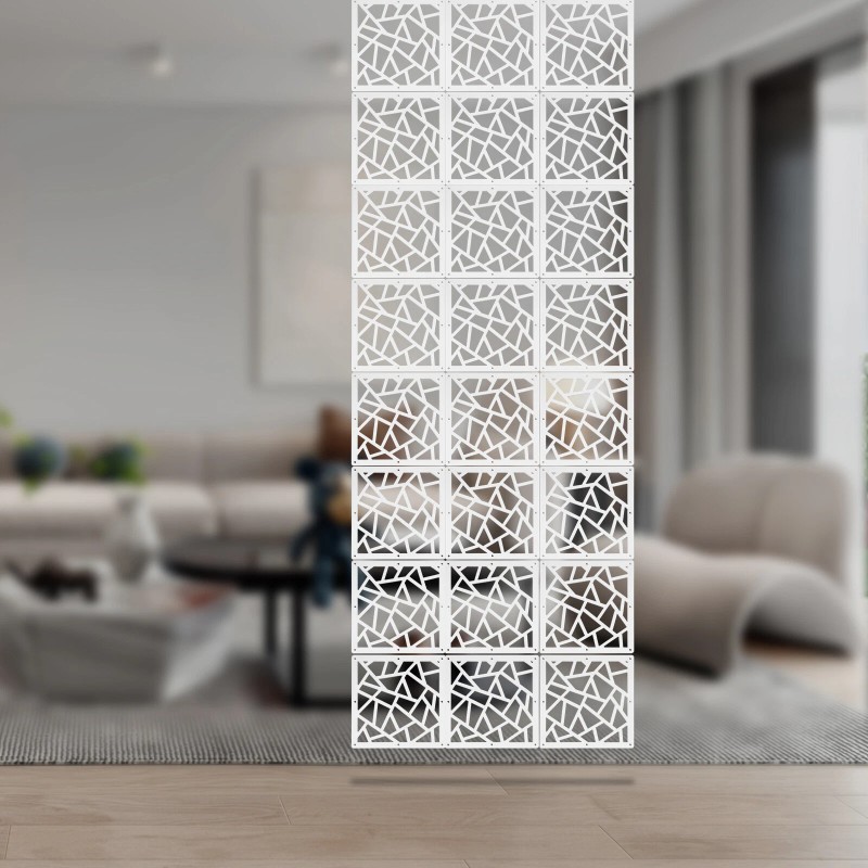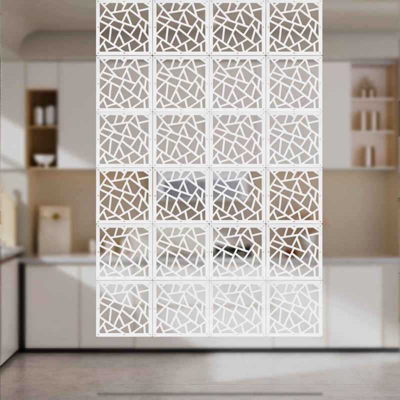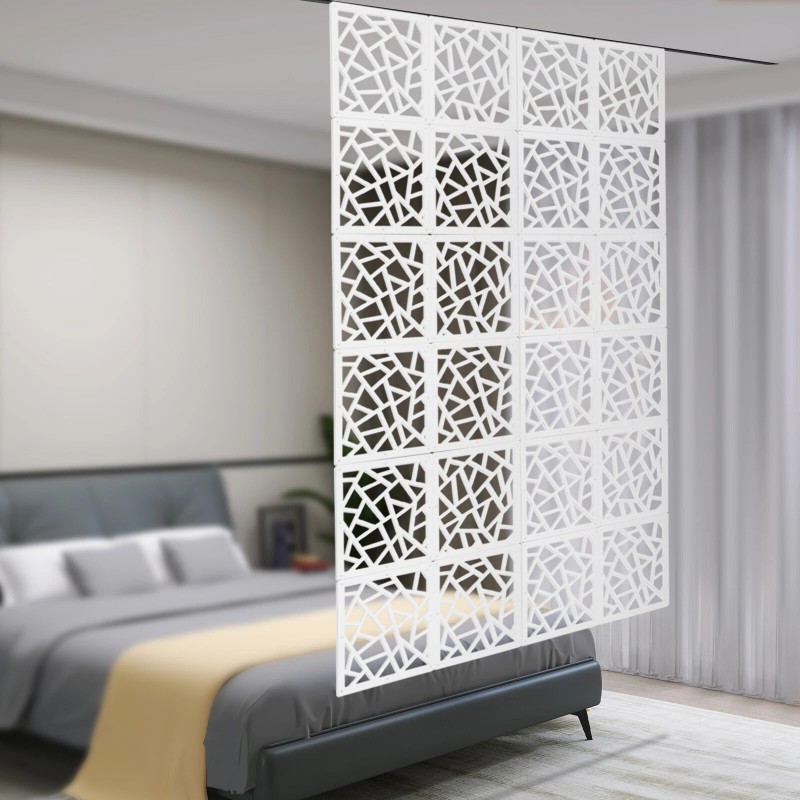 GDRASUYA10 Hanging Room Divider Decorative Hollow Out Design Wall Screen Panels White