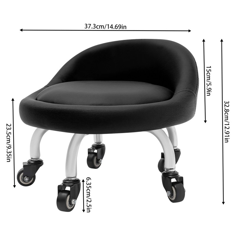 Comfortable Sitting: The 14.69-inch wide stool top and 5.9-inch backrest are very ergonomic, making it great for anywhere you need a comfortable low sitting position, such as caring for children, floor and corner finishes, labs, garages, salons and spas.