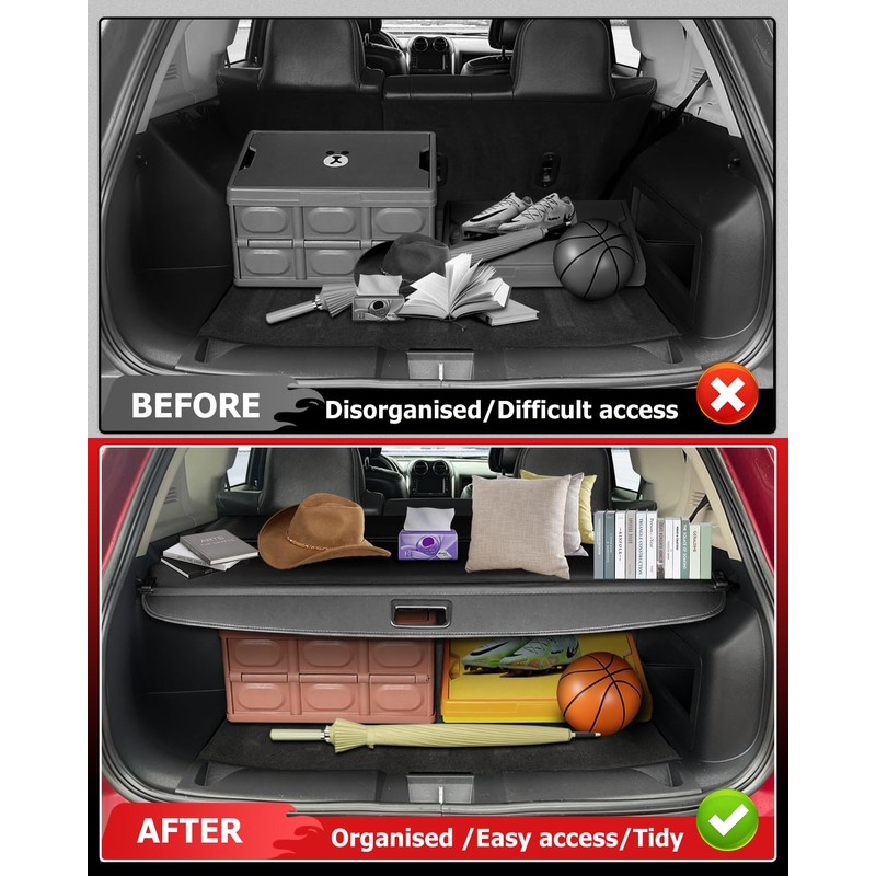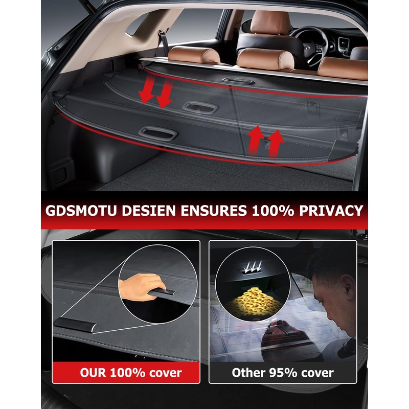 - Beautiful and Practical ---- GDSMOTU cargo cover is not only beautifully designed, but also multifunctional. It precisely fits the trunk contour and has a simple and stylish shape, which can enhance the beauty of the vehicle interior. The partition design keeps your car tidy and organized, and improves storage efficiency
