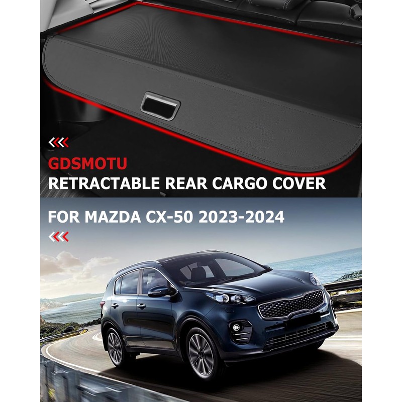 GDSMOTU Retractable Rear Cargo Cover for Mazda for CX-50 2023-2024, Waterproof Non Slip SUV Rear Trunk Retractable Security Shade Cover