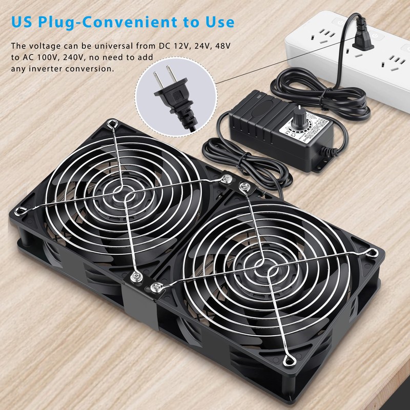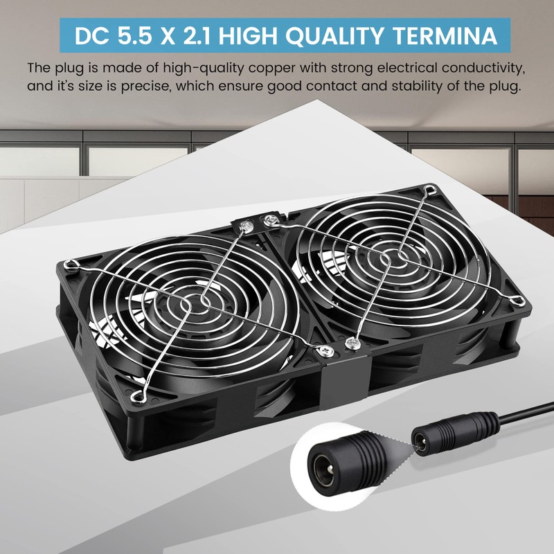- 【Applications】Dual 120mm fans designed for Amplifiers, Server Rack, Routers, Cabinets, Chassis, Greenhouses, Car Windows, Workstations, Computers, Incubators, Pet Boxes and other applications that require heat dissipation