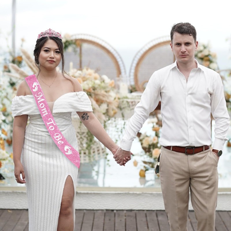 - 😍 Thoughtful Design: With cute footprint and shinny "Mommy To Be" printed on the mom to be sash. Each sash is equipped with a safety pin. You can adjust it to fit your figure. It is lightweight, pregnant lady will feel comfortable to wear it.