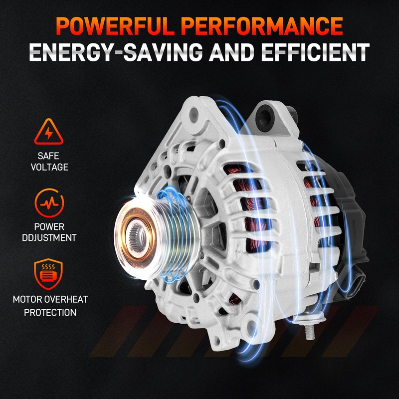 - [Original Equipment Interface]:Designed strictly to OEM specifications for a perfect plug-and-play replacement of your vehicle's original alternator. No modifications required. Complete with all mounting bolts and wiring harnesses, enabling DIY installation that saves both repair time and costs