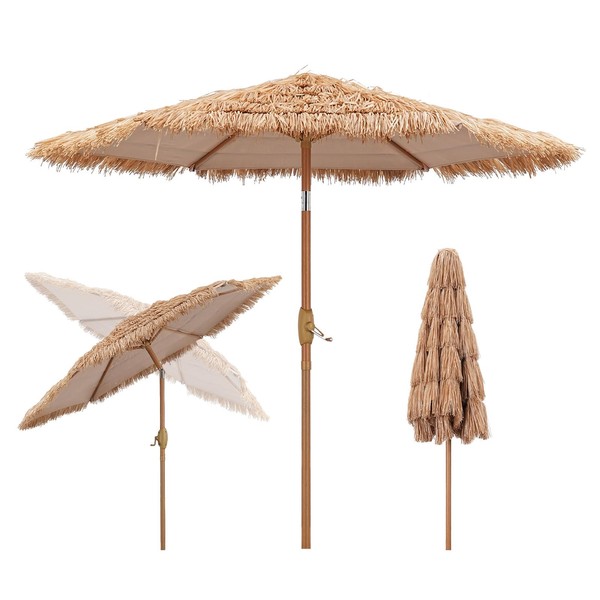 GDY 7.5 ft Tiki Patio Umbrella, Hula Thatched Umbrella, Straw Grass Umbrella, Pool, Patio, Beach