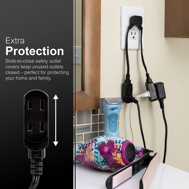 • Extra Protection – Slide-to-close safety outlet covers keep unused outlets closed – perfect for protecting your home and family