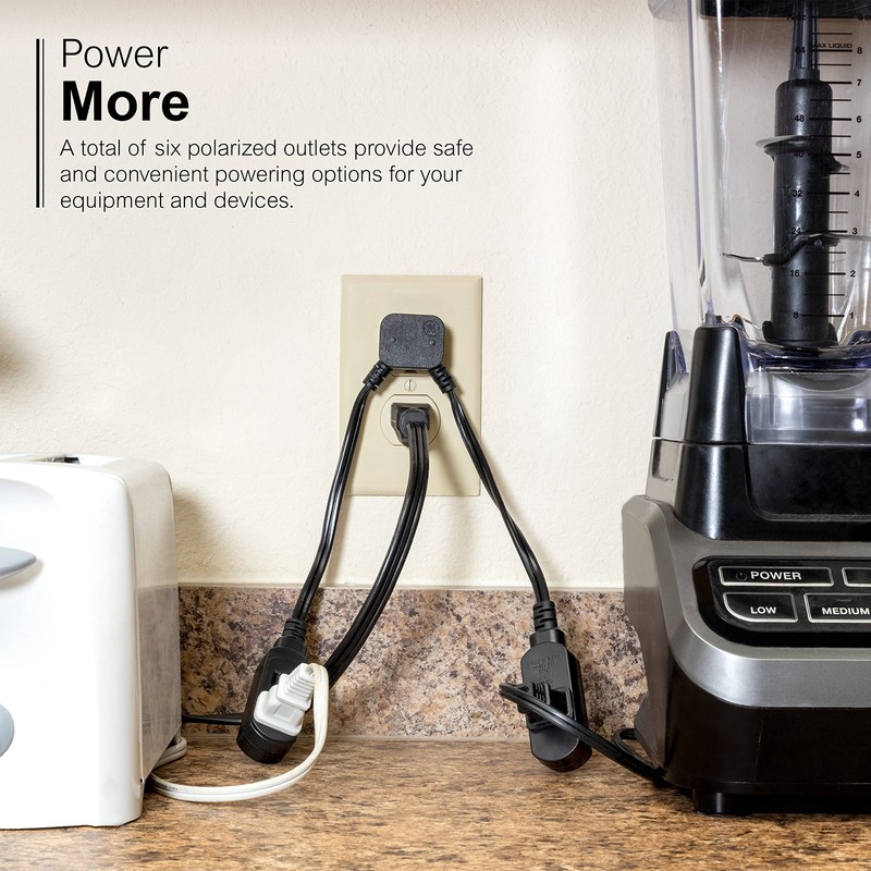 • Power More – Features a total of six polarized outlets to provide safe and convenient powering options for your equipment and devices