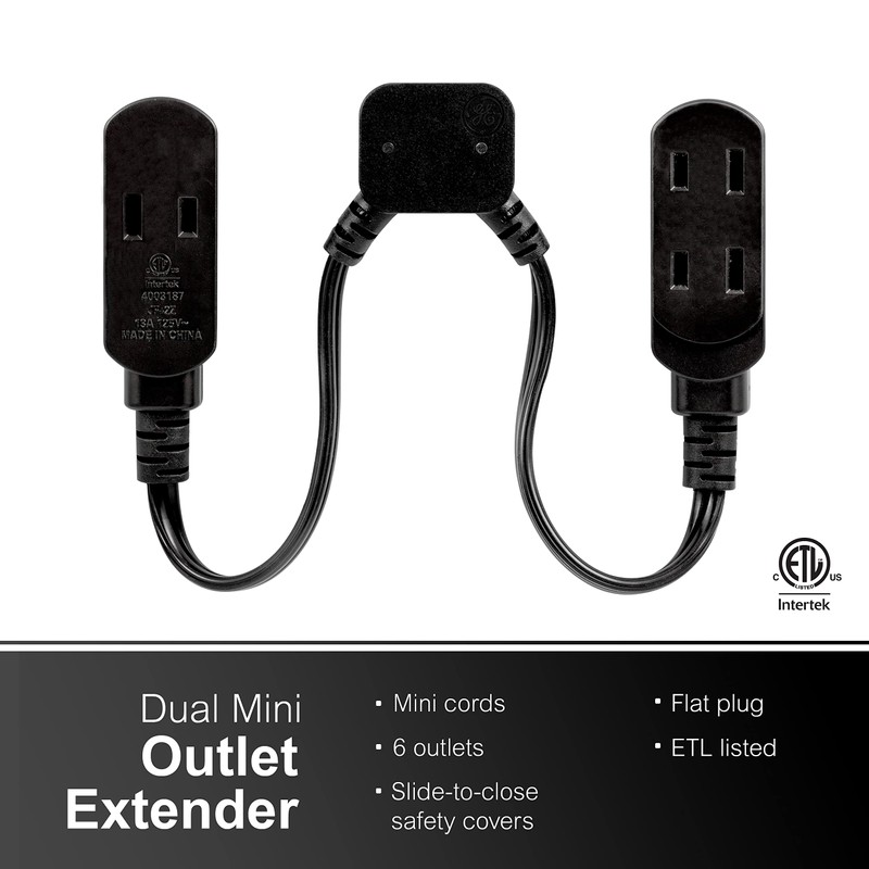 • Dual Extension Cords – The dual mini power cords are perfect for desk lamps, portable fans, laptops, phone chargers, decorations, alarm clocks and other household electronics requiring extra length to reach outlets