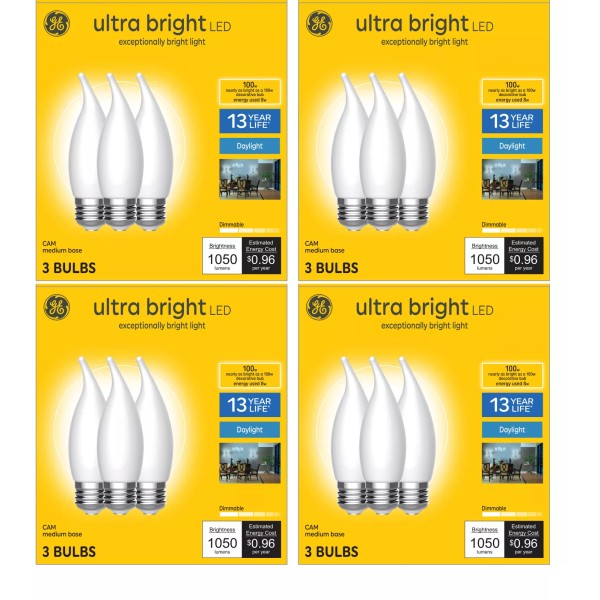 GE (12 Bulbs) GE Ultra Bright LED Light Bulbs, 100W, Daylight Candle Lights,