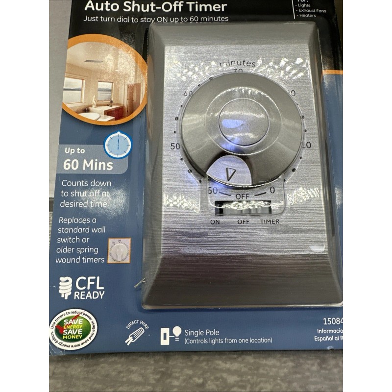 The GE 15 Amp Single-Pole 60-Minute Auto Shutoff Timer is a reliable and convenient product designed for use with various appliances such as heaters, lights, and fans. This in-wall timer features an auto-off function, ensuring that your devices are not left on for longer than necessary. With its new factory seal, you can trust that this timer is of high quality and ready for immediate use in your home or office. Perfect for controlling your electrical devices efficiently, this timer is a cost-effective solution for everyday use.