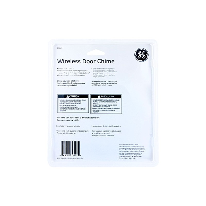 - Individual sounds for up to four GE wireless push buttons