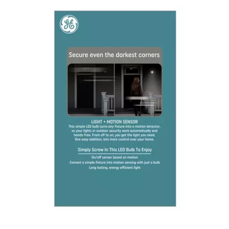 • Illuminate your space with ease and efficiency using GE LED+ Motion Sensor LED Light Bulbs. Say goodbye to fumbling for switches in the dark – our bulbs automatically detect motion, instantly flooding your room with bright, energy-efficient light. With advanced motion detection technology, our motion-sensing light bulbs activate instantly when motion is detected. Whether you’re navigating hallways, staircases, or closets, these indoor motion bulbs ensure safety and comfort in every corner of your home. Installation is a breeze – simply screw in the motion sensor LED bulbs like any standard light bulb and let them do the rest. Built with an advanced automatic motion sensor, this light has a 90-degree viewing angle and can detect motion within 24 feet.